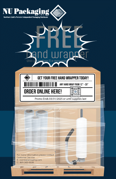 Hey Utah Businesses! Looking to wrap up some serious savings this first quarter? NU Packaging has you covered with an unbeatable deal on our top-quality hand stretch film. Order 10 or more cases of our 12” - 20” film, and we’ll throw in a FREE handy stretch wrapper - that’s right, completely FREE! This offer is your ticket to streamlined packaging and boosted efficiency. But don’t wait, this offer is only good while supplies last, so grab it before it’s gone!